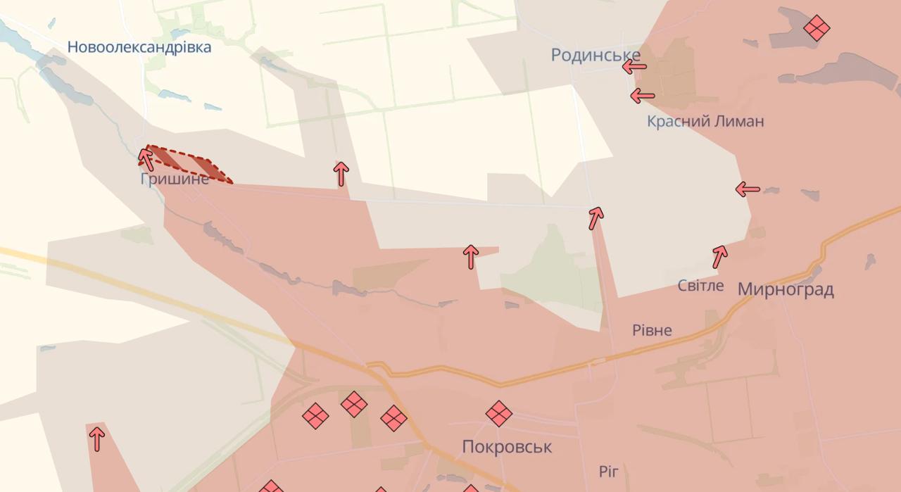 Ruská armáda pokračuje v postupu v Pokrovském směru. Ruské jednotky dobyly většinu obce Grišino a postoupily také v oblasti bývalého Dobropilského výběžku, informuje Deep State.