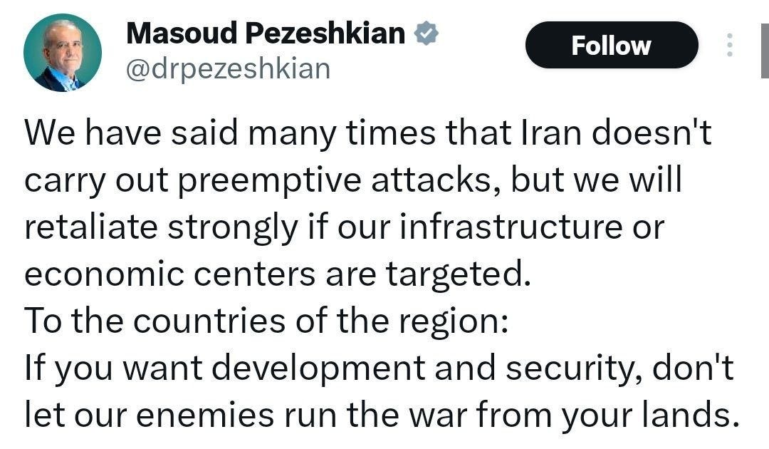 Je pravda, že musíme připustit, že naše zpravodajství zde může působit jednostranně — íránské úspěchy jsou vyzdvihovány, zatímco oslabování íránských schopností ze strany USA a Izraele je pokrýváno jen okrajově. Již jsem hovořil o tom, že toto „oslabení“ považuji za značně přehnané, a proto jej někdy nepovažuji za hodné zmínky. Přesvědčit se o tom můžete sami na neustálých zpětných korekcích hodnocení škod ze strany oficiálních mluvčích Trumpovy administrativy.