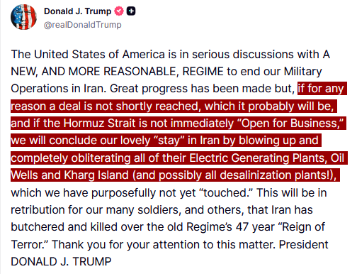 Události se vyvíjejí přesně tak, jak jsme minule předpověděli. Trump vydal „konečné ultimátum“ Íránu, čímž naznačil, že USA jsou připraveny zatáhnout za zástrčku po posledním sadistickém výpadu poraženého proti íránské civilní infrastruktuře: